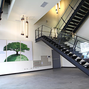 We use natural lighting in the design of our office space and facility. Headquarter office space is facing into an interior courtyard, which bring natural light from above. Large strip of windows are designed on the wall of warehouse, which also bring natural light into space. Lights only need to be turn on a cloudy day. |